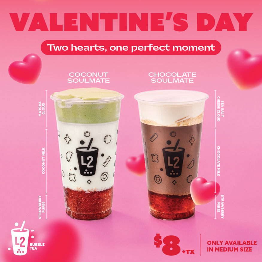 For a limited time try our two special Valentine’s Day drinks; Chocolate Soul Mate or Coconut Soul Mate for 8$. Savor the moment with the perfect boba.