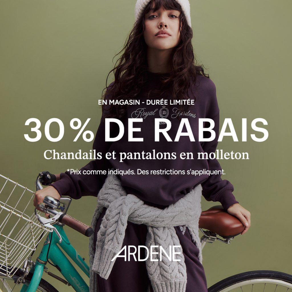30% de rabais sur les chandails et pantalons en molleton. En Magasin – Durée Limitée.