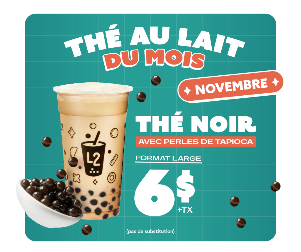 Laissez-vous tenter par notre thé au lait classique avec tapioca . P’tit conseil : essayez-le chaud pour encore plus de réconfort!