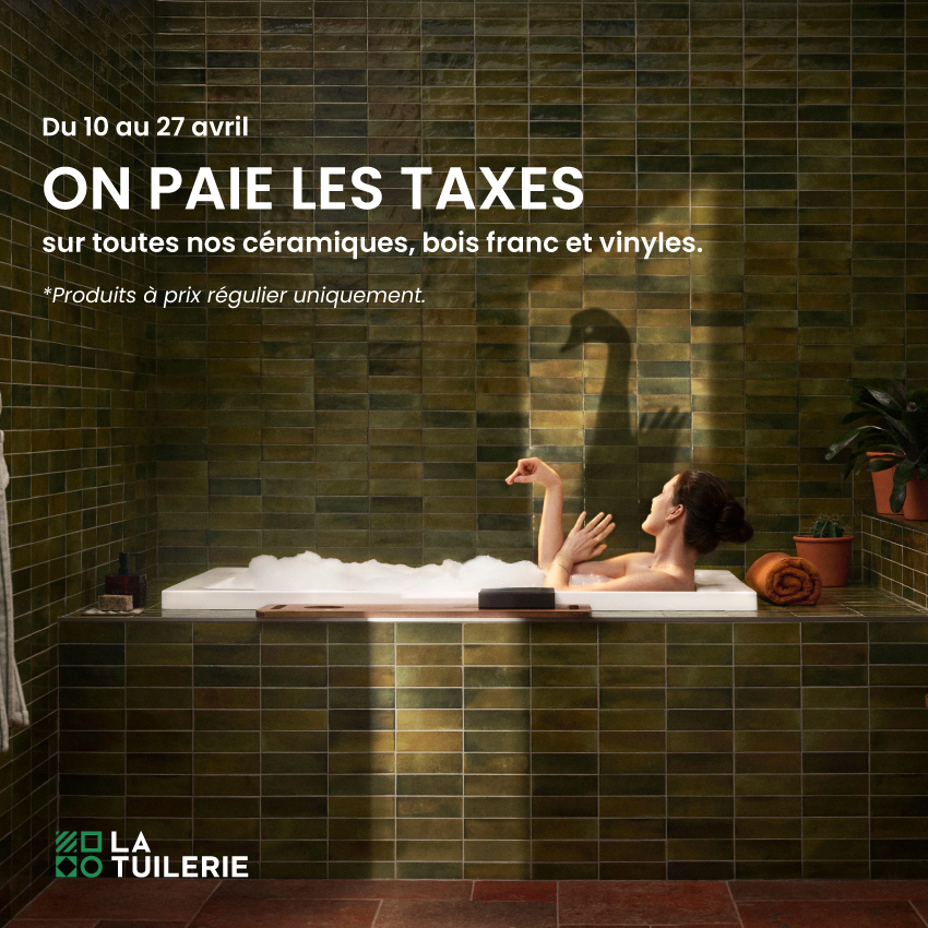 đź’šDu 10 au 27 avril 2026, donnez vie Ă vos projets avec 15% de rabais sur nos cĂ©ramiques, bois franc et vinyles sĂ©lectionnĂ©s !Â
